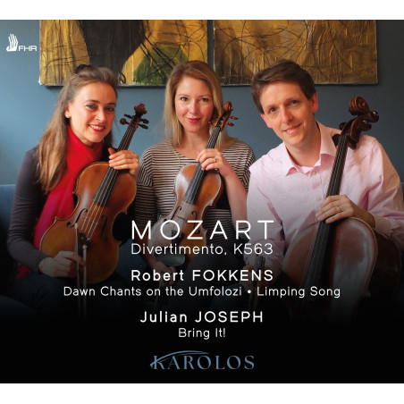 Lorsque l’opportunité d’enregistrer ce chef-d’œuvre s’est présentée, nous avons été confrontés au défi de compléter le programme. Notre cher ami Rob Fokkens avait écrit deux courts mouvements pour trio à cordes qui semblaient parfaitement correspondre à la musique de Mozart : le style harmonique et rythmique translucide de Rob offre des possibilités d’expression uniques.